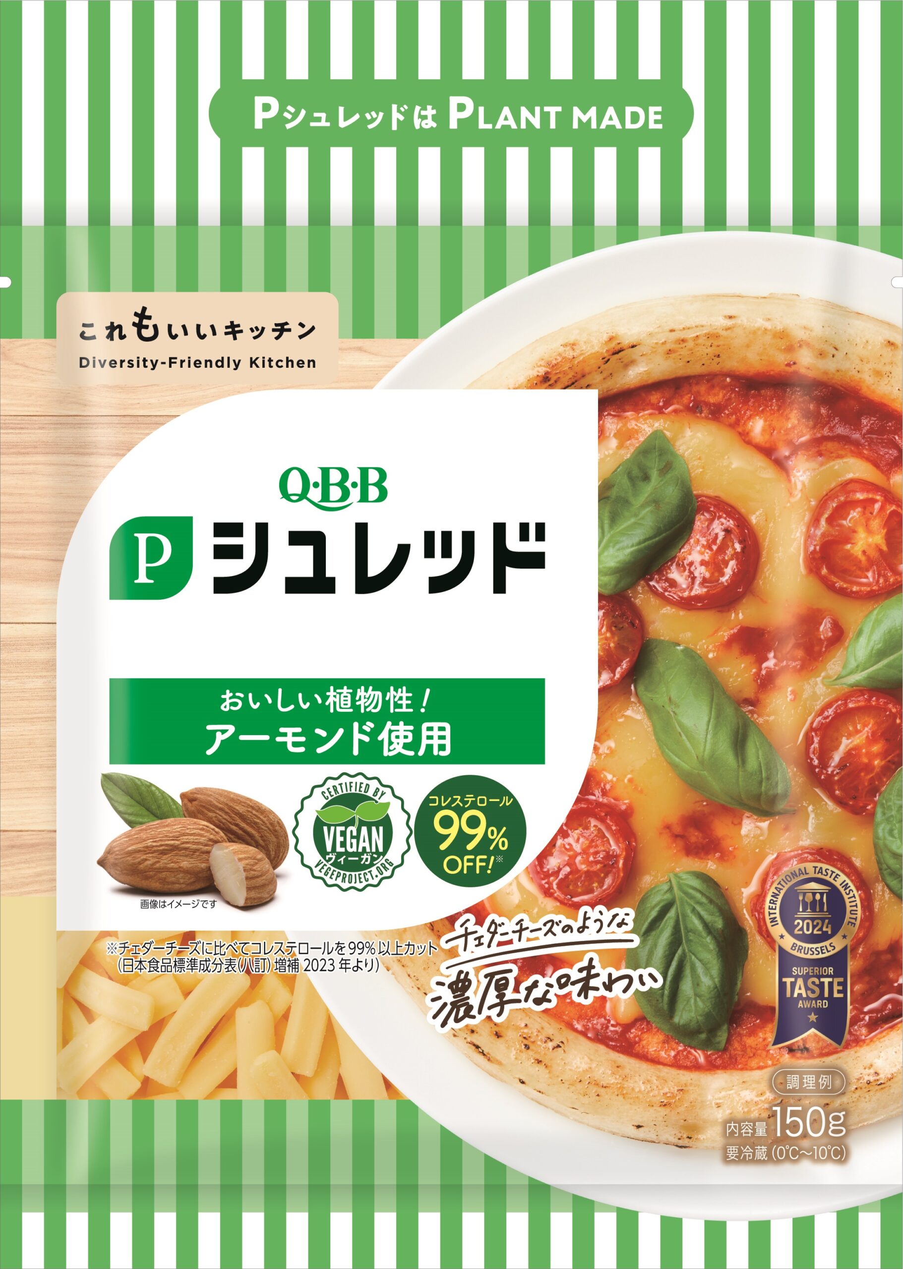 - Contains over 99% less cholesterol compared to Cheddar cheese (based on the Standard Tables of Food Composition in Japan (8th Revised Edition), Supplement 2023).